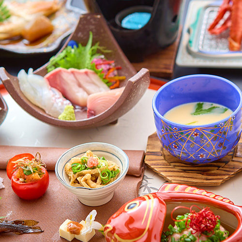 境港に揚がる山陰の海の幸や地元産の野菜、有機米など食材にこだわったお料理を提供。